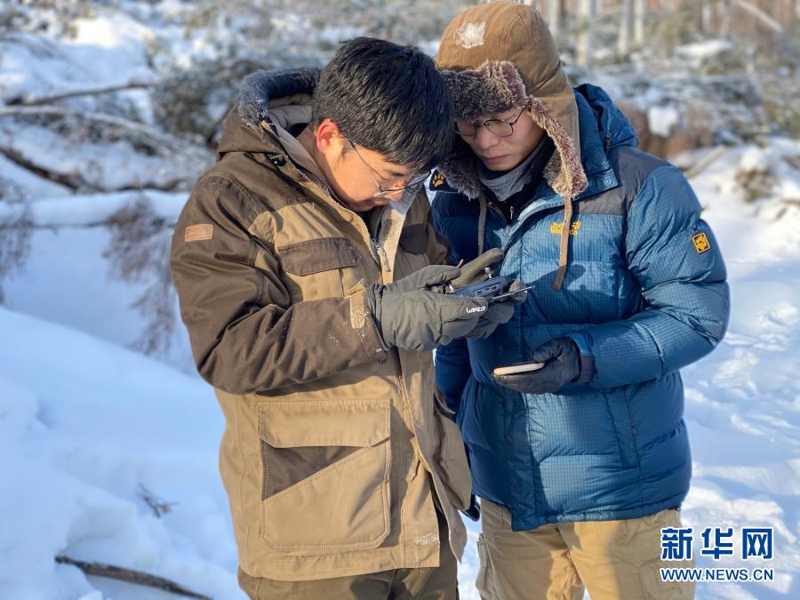 科研人员在内蒙古大兴安岭汗马国家级自然保护区操作无人机远红外热成像系统(2020年12月26日摄)。新华社发(马健 摄)