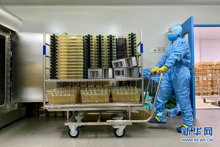 2月8日,在哈尔滨工业大学生命科学中心实验动物平台,工作人员将待消毒的笼具推入高压灭菌锅(手机照片)。