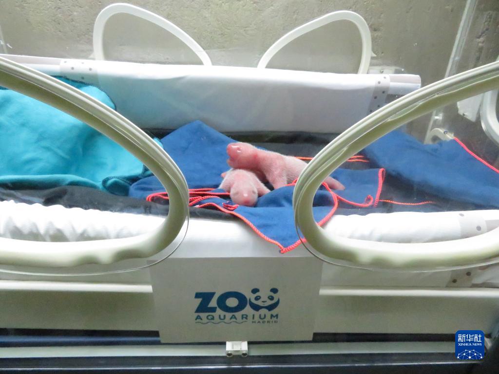 这是9月6日在西班牙马德里拍摄的刚刚出生的两只大熊猫幼崽。
