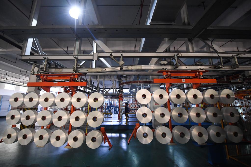 12月22日在位于浙江省湖州市吴兴区东林镇的新凤鸣集团湖州基地生产车间拍摄的运转中的自动化生产线。新华社记者 徐昱 摄